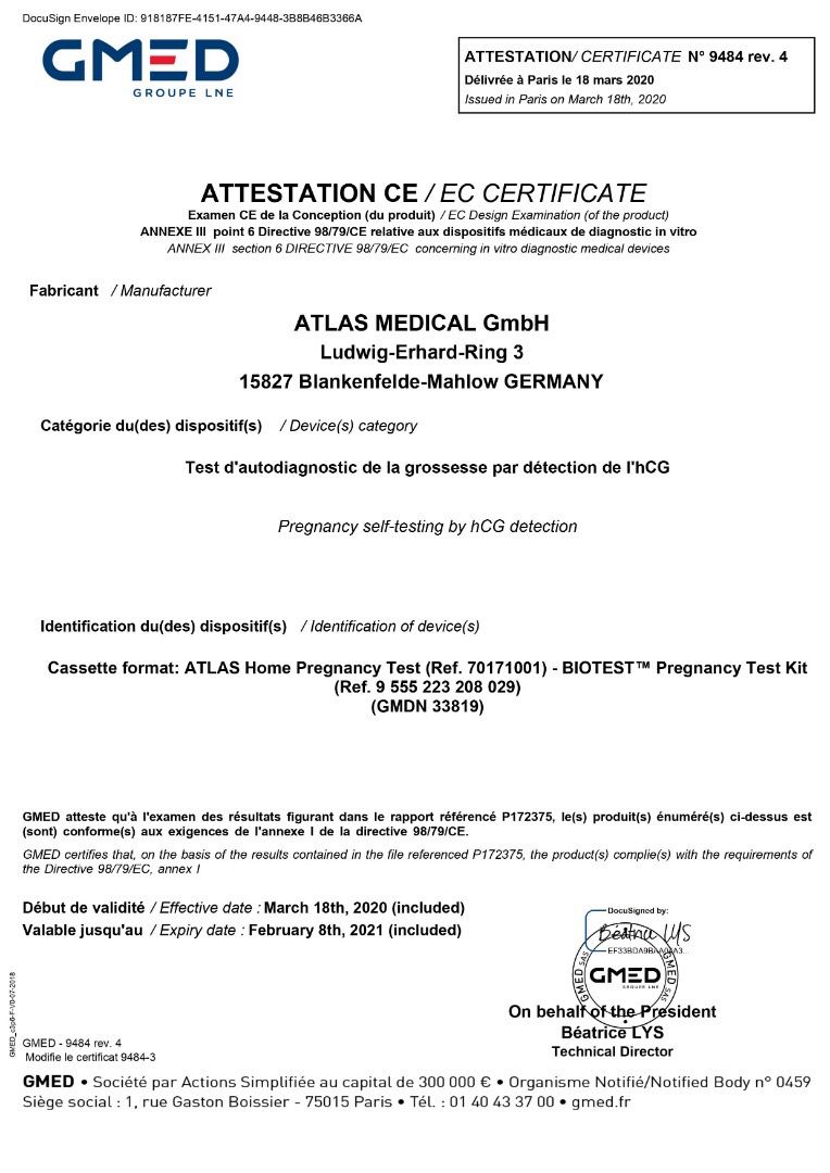 Atlas Gebelik Testi, idrar örneğinde gebelik hormonunun varlığını tespit eder. Gebeliğin, adet gecikmesinin ilk gününden itibaren tespit edilmesini sağlayacak kadar hassastır.